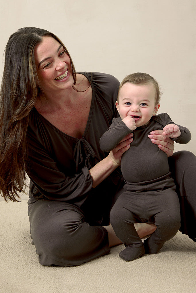 From our buttery-soft Solly Wraps to thoughtfully designed baby sleepers, crib sheets, swaddles, and knotted hats, every item is made from eco-friendly TENCEL™ Modal and constructed with care. We offer newborn essentials, matching family pajamas, and gifts for every milestone—all crafted to support comfort and bonding.