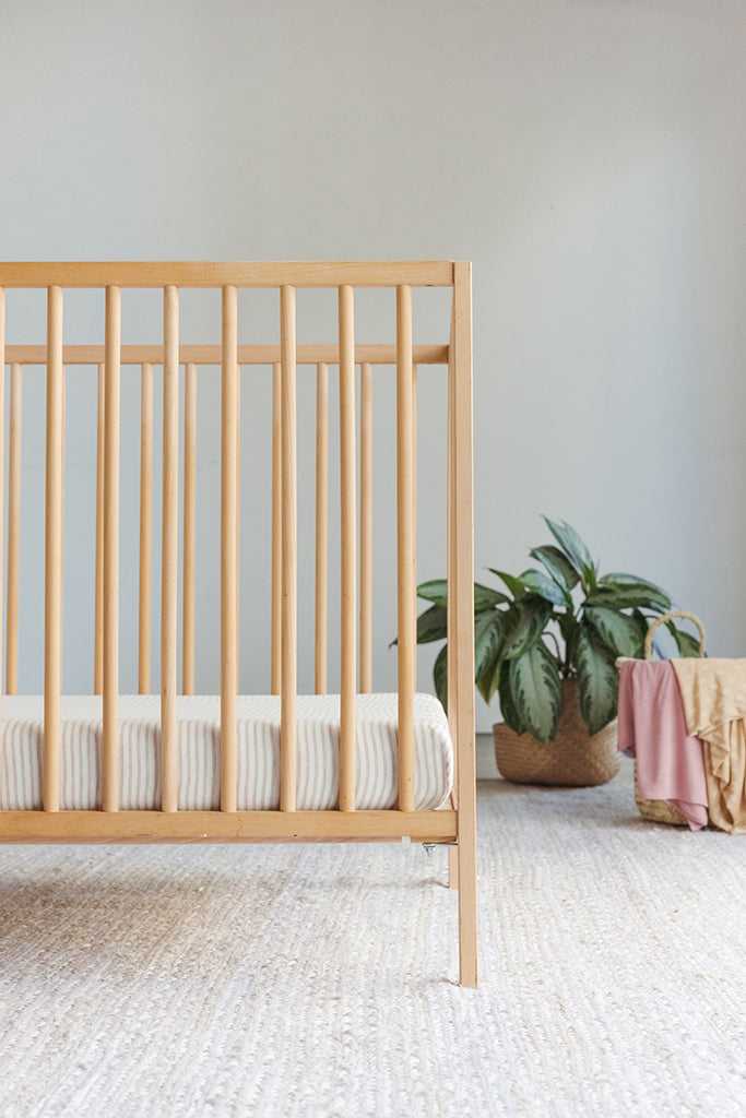 Crib time is sacred—especially during those early months when sleep (for both baby and you) is precious. That’s why our fitted crib sheets are made from 100% certified TENCEL™ Modal, a silky-soft fiber derived from sustainably harvested beechwood. This fabric is more breathable than cotton, cool to the touch, and incredibly durable, even after frequent washes. It's also OEKO-TEX® certified and responsibly manufactured, so you can rest easy knowing your baby's bedding is as safe as it is soft.